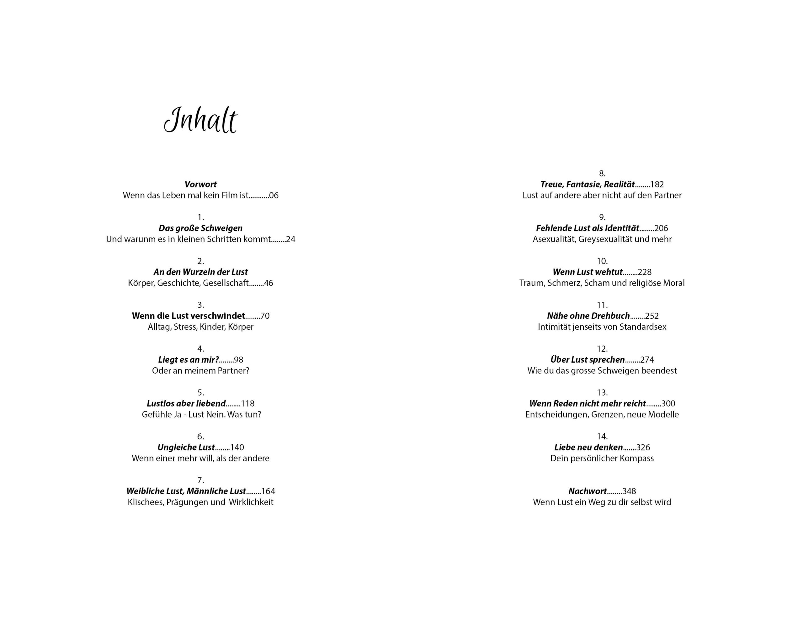 LUSTLOS ist ein ehrliches Buch über das, worüber in Beziehungen am meisten geschwiegen wird: über Lust, die verschwindet, über ungleiche Bedürfnisse, über Scham, Druck, Asexualität, Affären, Fantasien und das zähe Gefühl, „irgendwie nicht normal“ zu sein. Die Autorin Aurelia Ignatio verbindet psychologisches Wissen, Forschung und berührende Geschichten aus der Praxis und zeigt: Erlahmende Lust ist selten ein Beziehungsurteil – oft ist sie ein Schutzsignal. An dich und an euch.